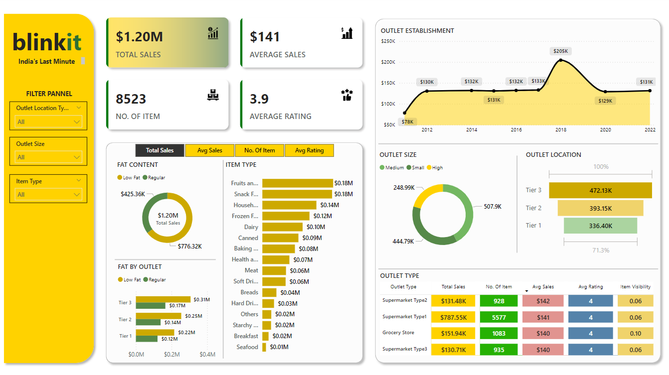 The Blinkit Sales Dataset provides sales transaction data from Blinkit, an online grocery delivery platform. This dataset enables the analysis of customer purchasing behavior, product demand, revenue trends, and overall sales performance over time.